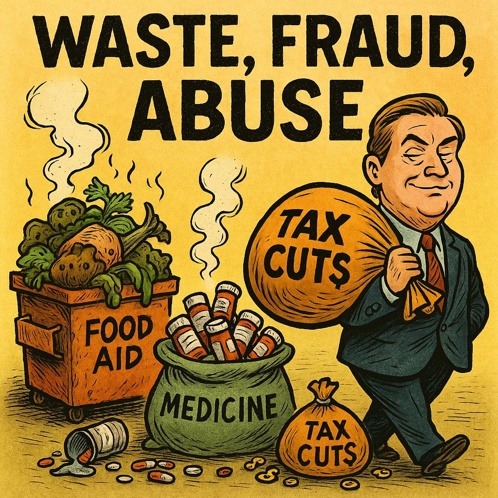 Republicans aren’t rooting out waste.They are redistributing it. From food programs to public broadcasting, from medicine to education, they’re cutting what the majority needs to pay for what billionaires want. And they’re doing it with straight faces, wrapped in the language of accountability.