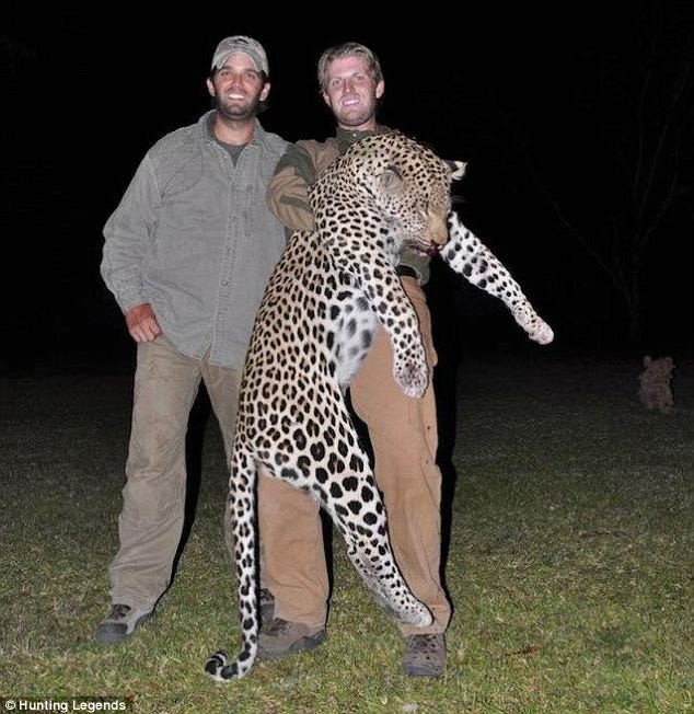 To the best of public knowledge, the Trumps have never had a pet. No dog on the campaign trail. No cat in the White House. No hamster in Barron’s room. But there are plenty of photos of Trump’s sons grinning beside the exotic animals they’ve gunned down on hunts. In their world, animals are trophies, not companions. The only value they hold is as something to dominate, display, or discard.