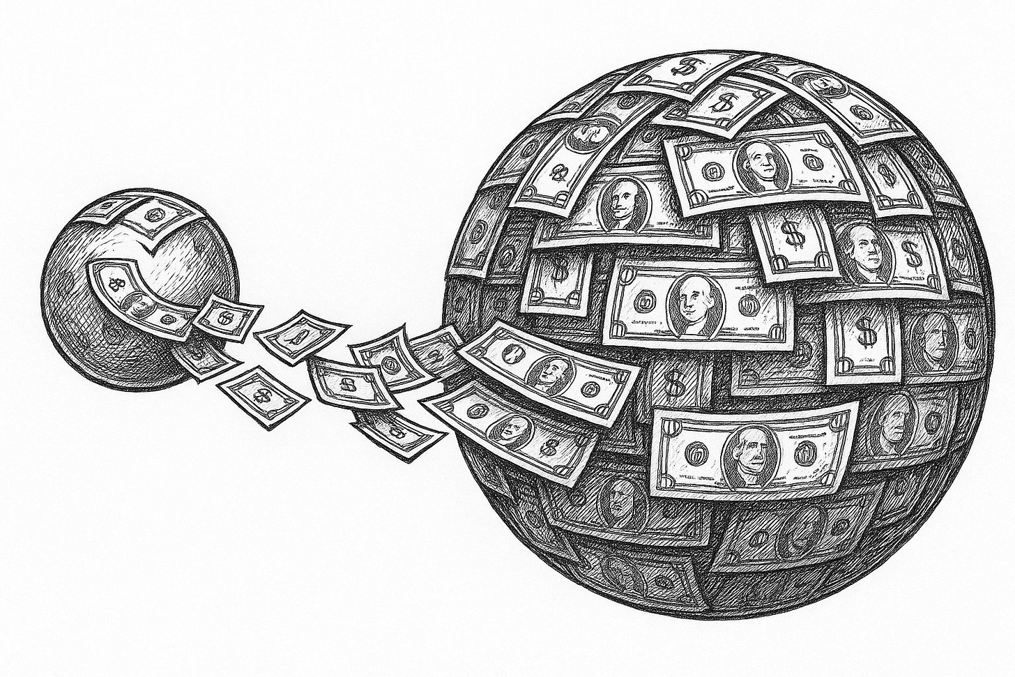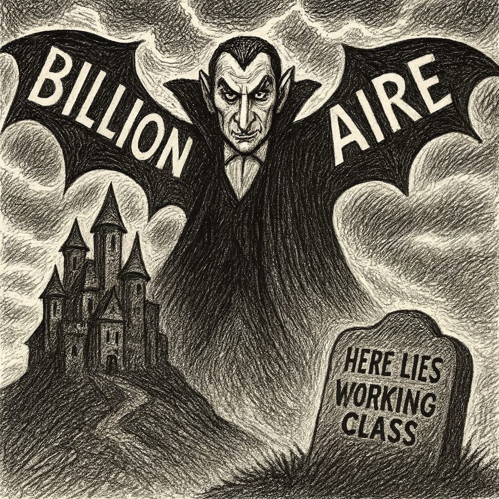 For most of us, the real economy means grocery bills and rent or a mortgage scraped together from our hard-earned paychecks. For billionaires, it’s stocks, leveraged assets, and derivatives — money that multiplies itself without ever touching the real world. The real economy and the paper economy (as coined by economists) are no longer connected in any meaningful way, but have become two different beings. One is alive, sweating through endless toil and survival, while the other, like an undead beast, feeds on it from the shadows.