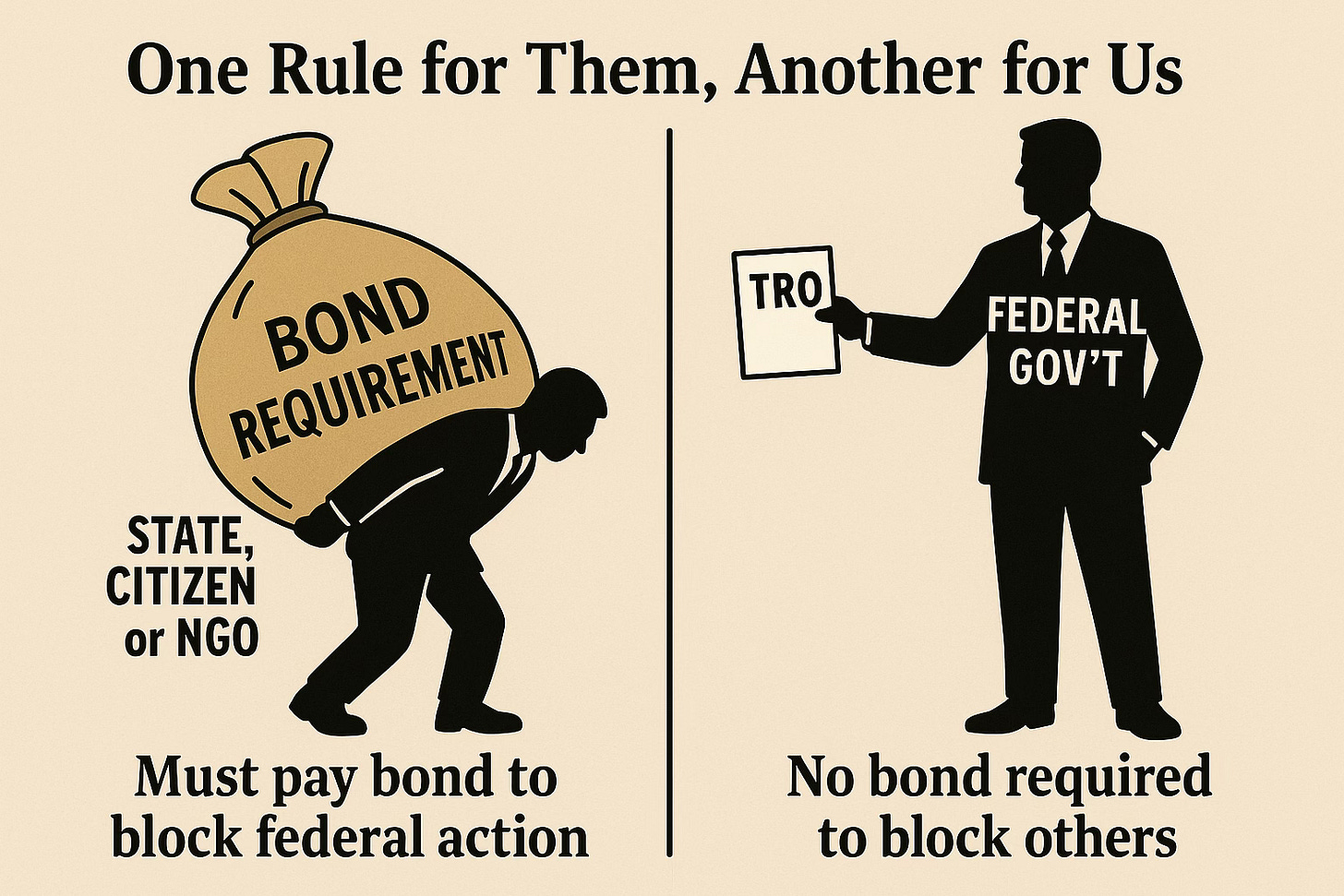 Meanwhile, the federal government itself can seek injunctions without posting a bond, which elevates federal power above the rule of law.4