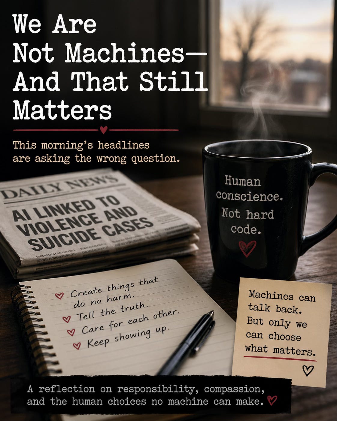 There is a temptation, especially in moments like this, to look for a single place to assign blame. The machine. The company. The system. Something large enough to hold our fear.